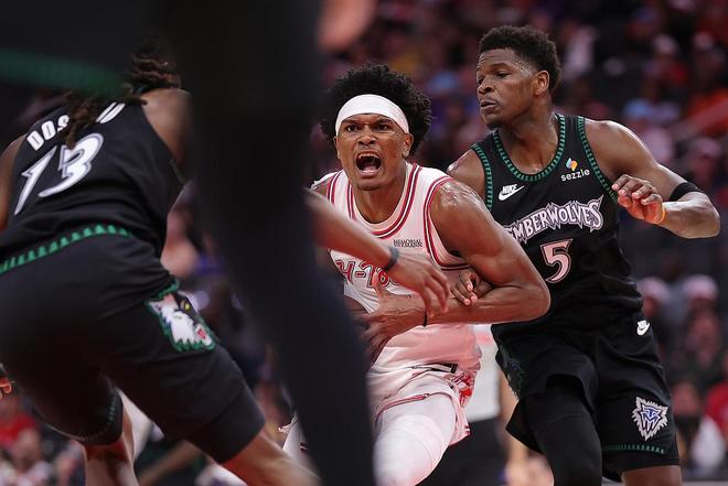 森林狼队的香农得到23分,爱德华兹得到22分和3次助攻,迪文琴佐得到18分和4个篮板,安德森得到17分、6个篮板和9次助攻,麦克丹尼尔斯得到16分和8个篮板,多苏姆得到15分和4次助攻,贝林格得到14分和4个篮板。火箭队的汤普森得到41分、9个篮板和7次助攻,杜兰特得到33分、7个篮板和7次助攻,37岁的他成为单季得分2000+年龄最长的球员。申京得到22分、6个篮板和8次助攻,史密斯得到16分和6个篮板,谢泼德得到12分。