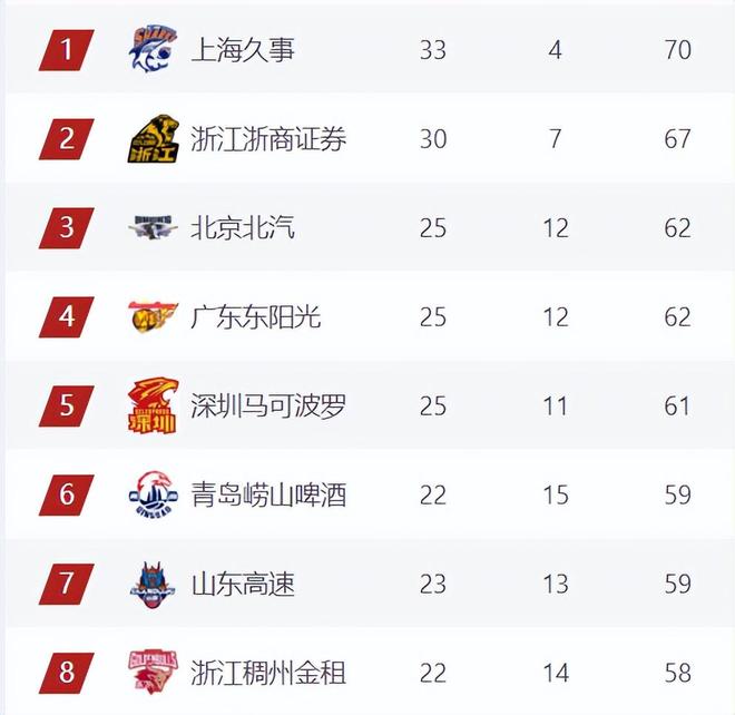 6连胜的浙江近期势头也非常猛,当然了,以浙江目前的纸面实力来看,离冲冠还很远,但非常有机会杀进常规赛前6,冲击季后赛8强,赛季初浙江战绩惨淡,中途换了教练后,浙江队开始围绕年轻球员打造新的攻防体系,李悦州、张洪硕本赛季进步很大,二阶段约克虽然离队了,但新来的安德鲁斯表现还行,除此之外,程帅澎、陆文博等本土中生代主力能力也一直在线,不管季后赛谁遇到浙江,都将掉一层皮。