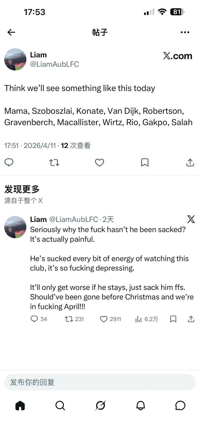 索博右后卫,轮休弗林蓬,莫哈首发左边锋,加克波疑似踢中锋,轮换埃基蒂克,有点像回到433。利物浦应该会踢得更快速直接一些,这样才能找到生机。