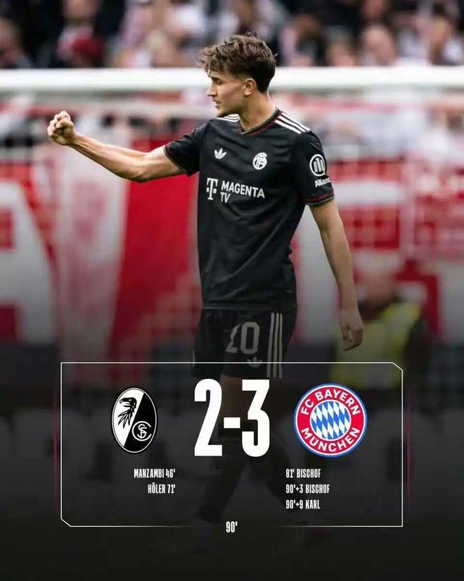 弗赖堡2比3拜仁慕尼黑